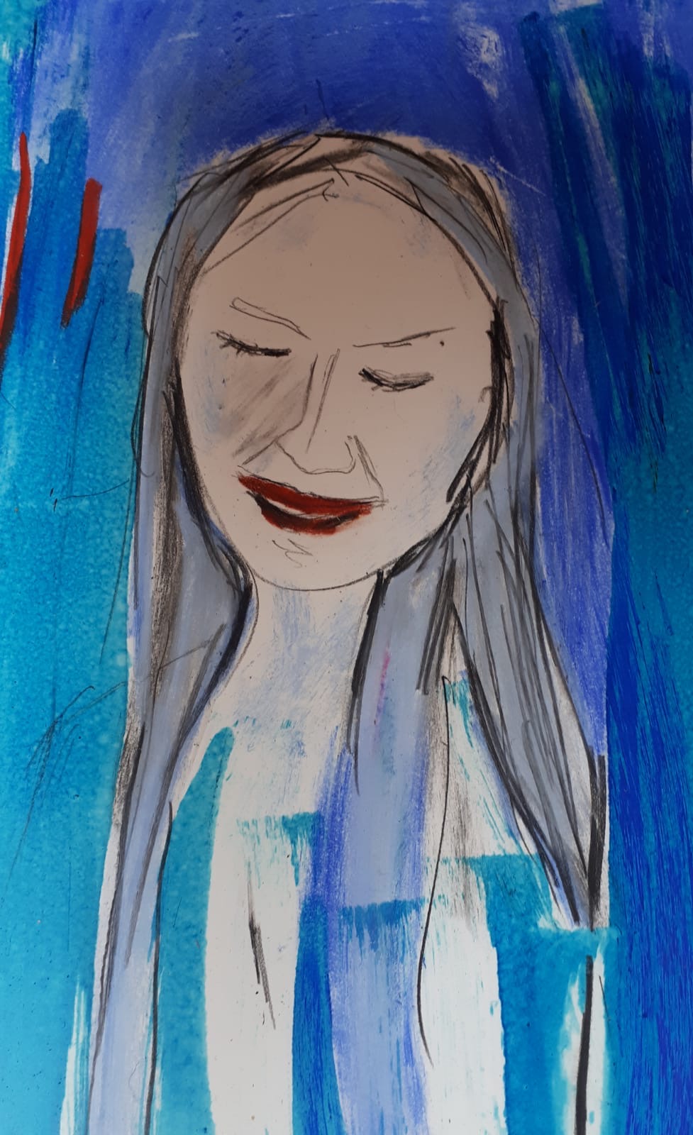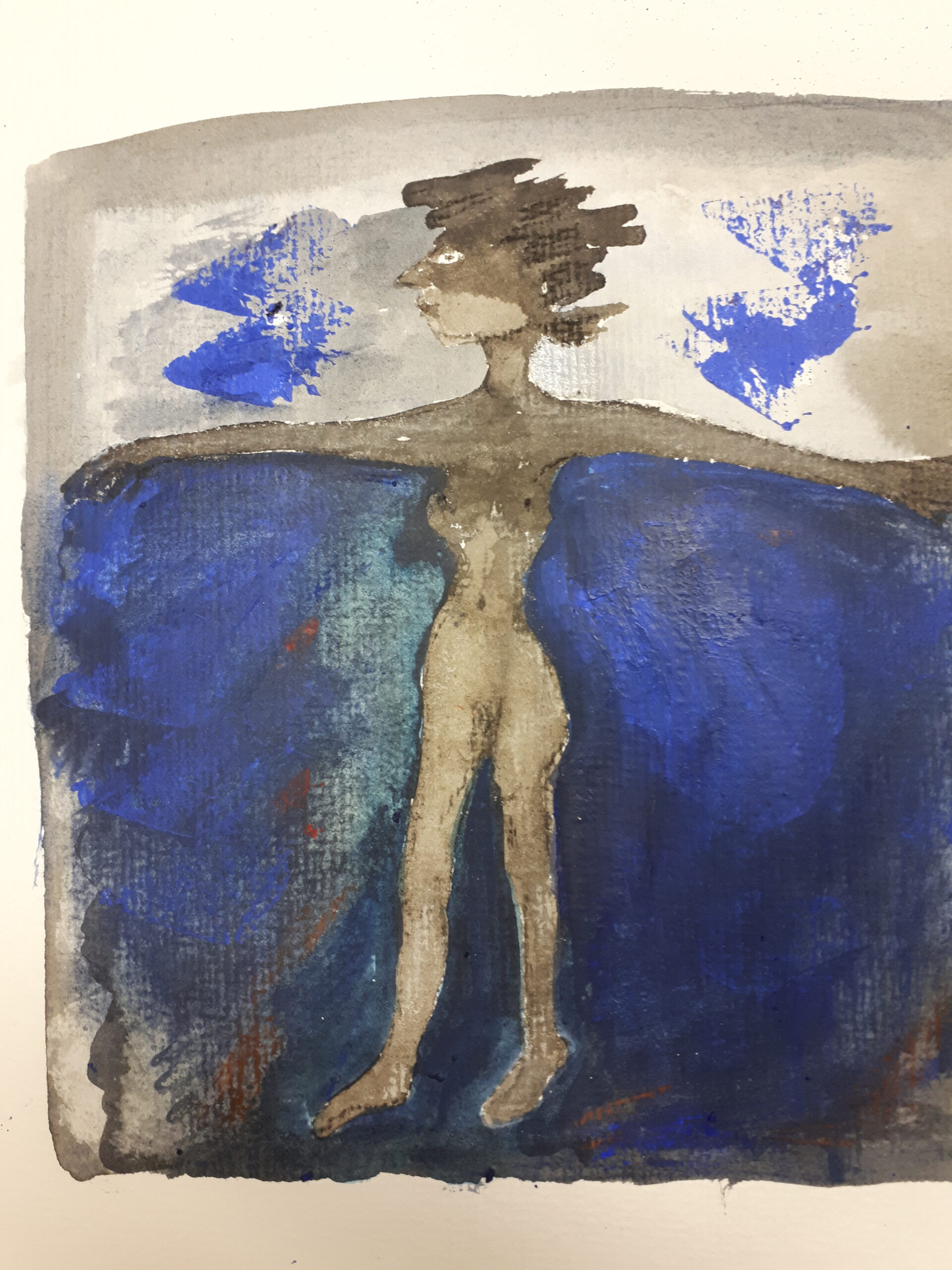Ich beginne ein Bild, tauche ein in einen Prozess. Entspricht der Ausdruck noch nicht meinem inneren Gefühl, male ich oft viele Schichten übereinander, bis es für mich stimmig ist oder ich es schlussendlich wegwerfe.